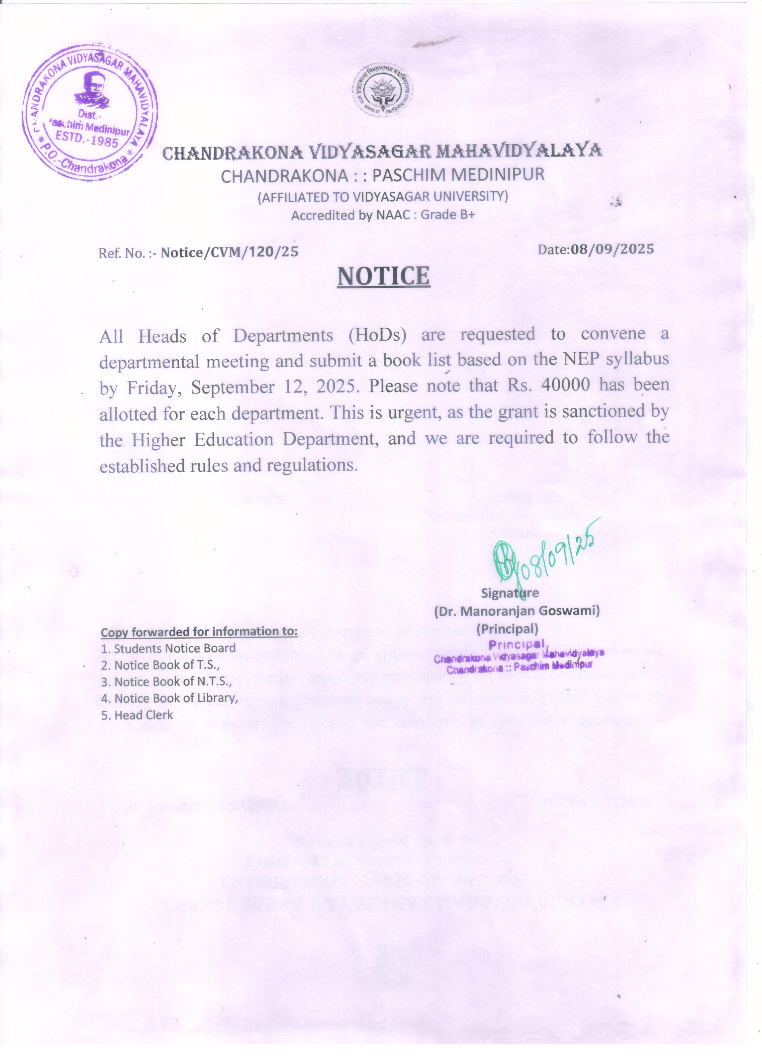 Important Notice to All Heads of Departments
