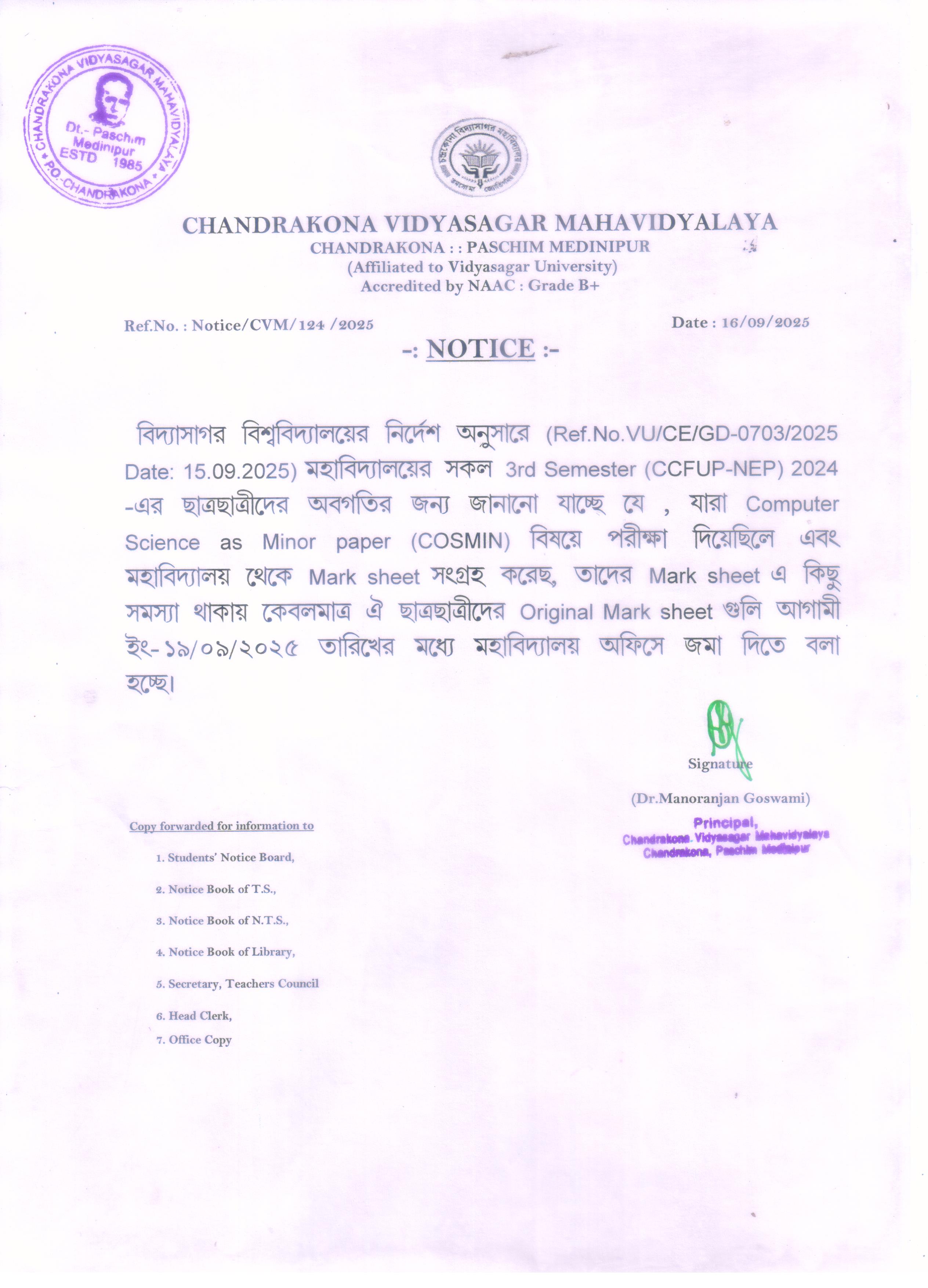 Return of Mark Sheet – 3rd Semester_COSMIN Paper