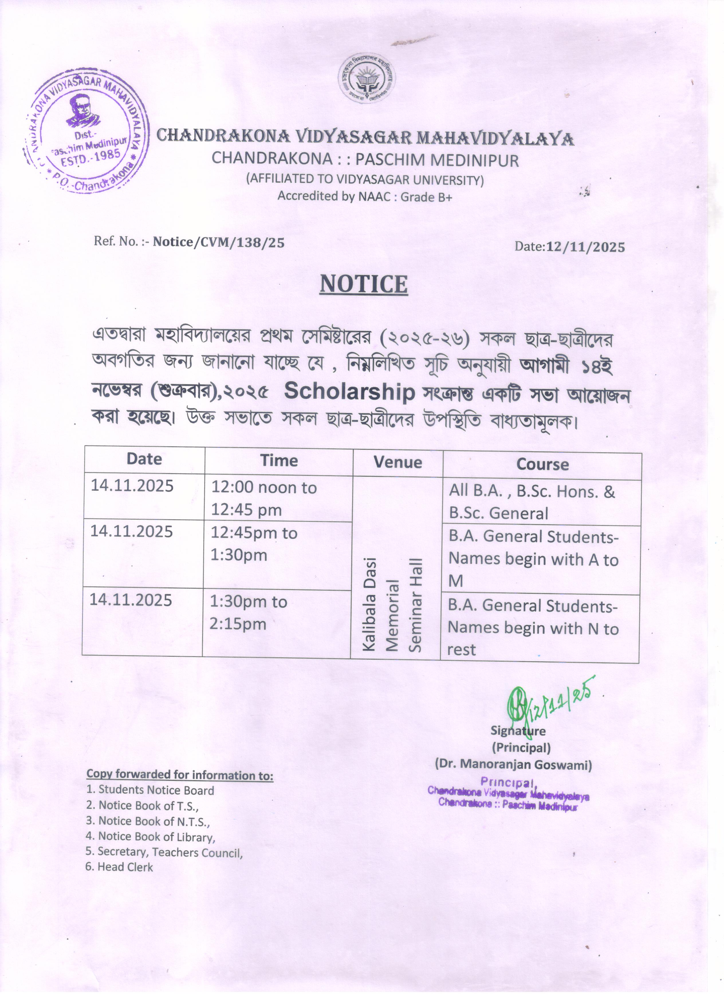 Scholarship Notice for Newly Admitted (1st Semester) Students