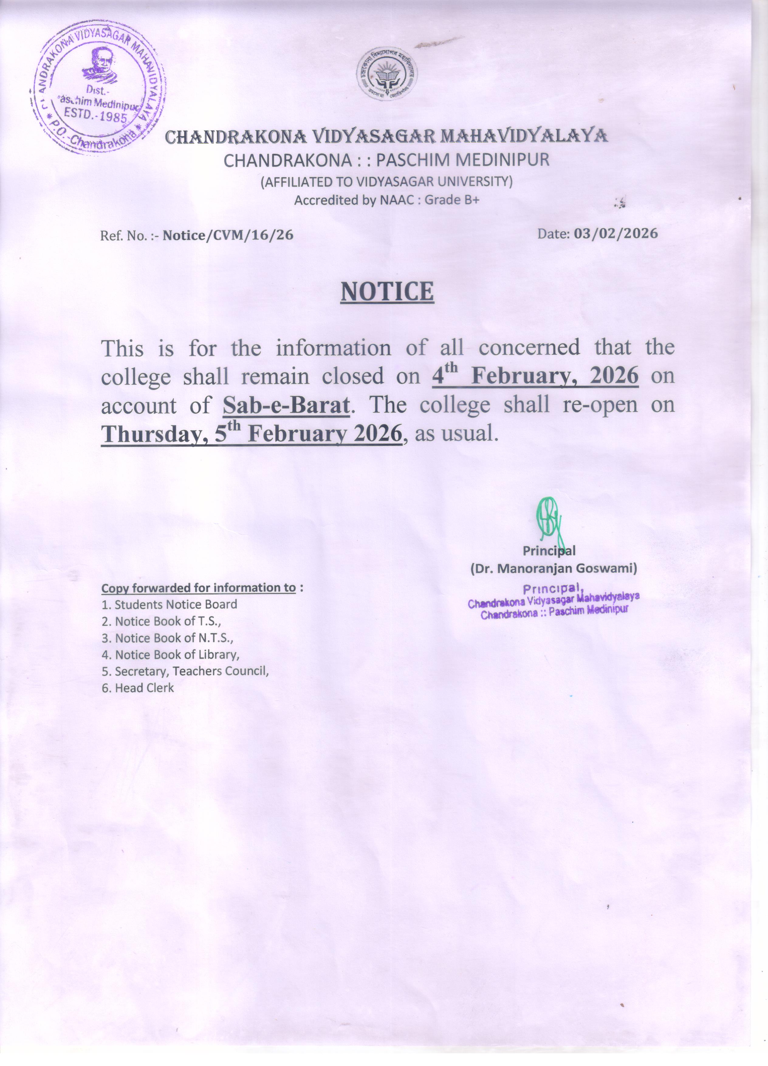 Notice for all Students