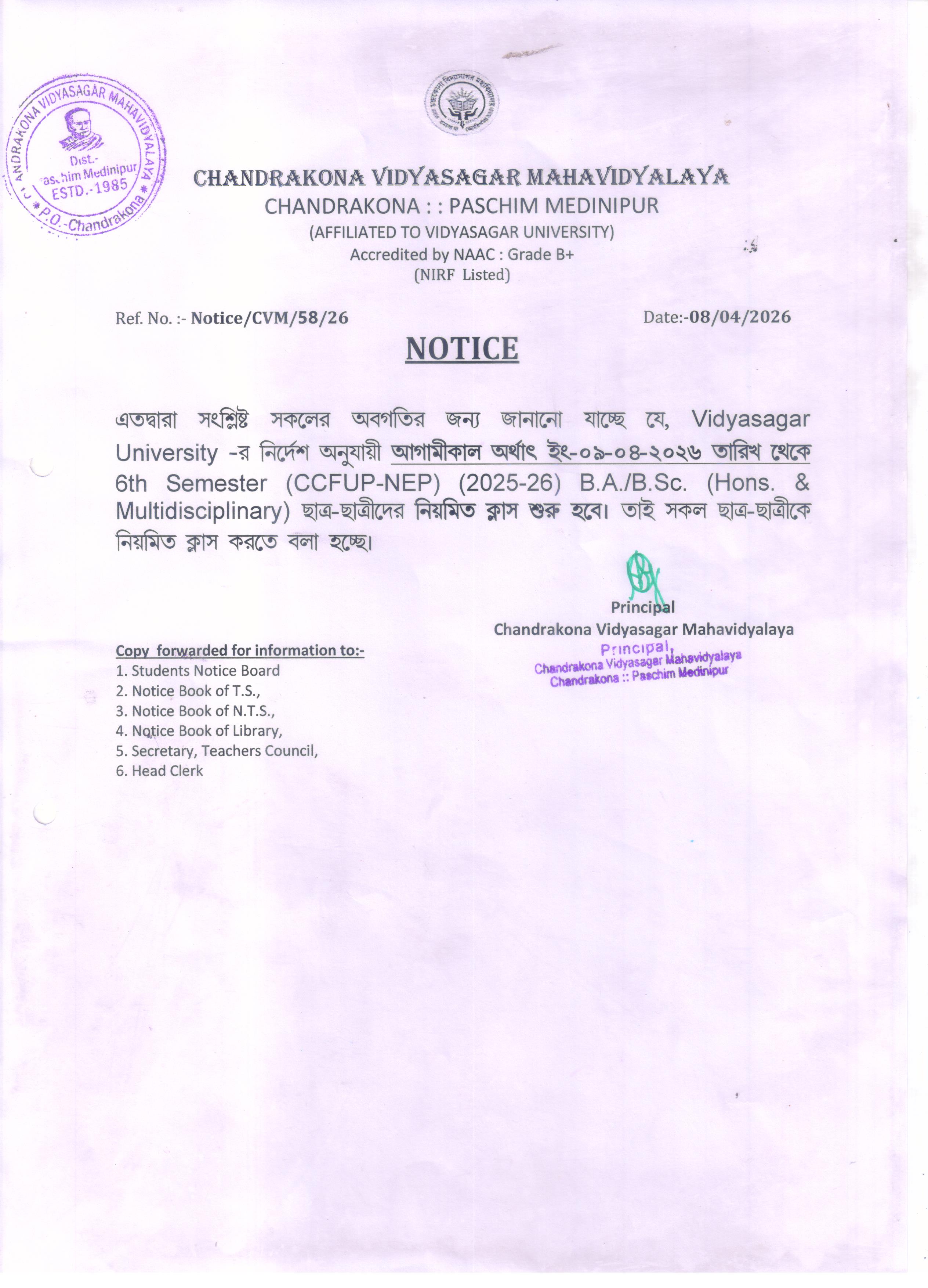 Notice for 3rd Semester for result cancelation , review and Self inspection
