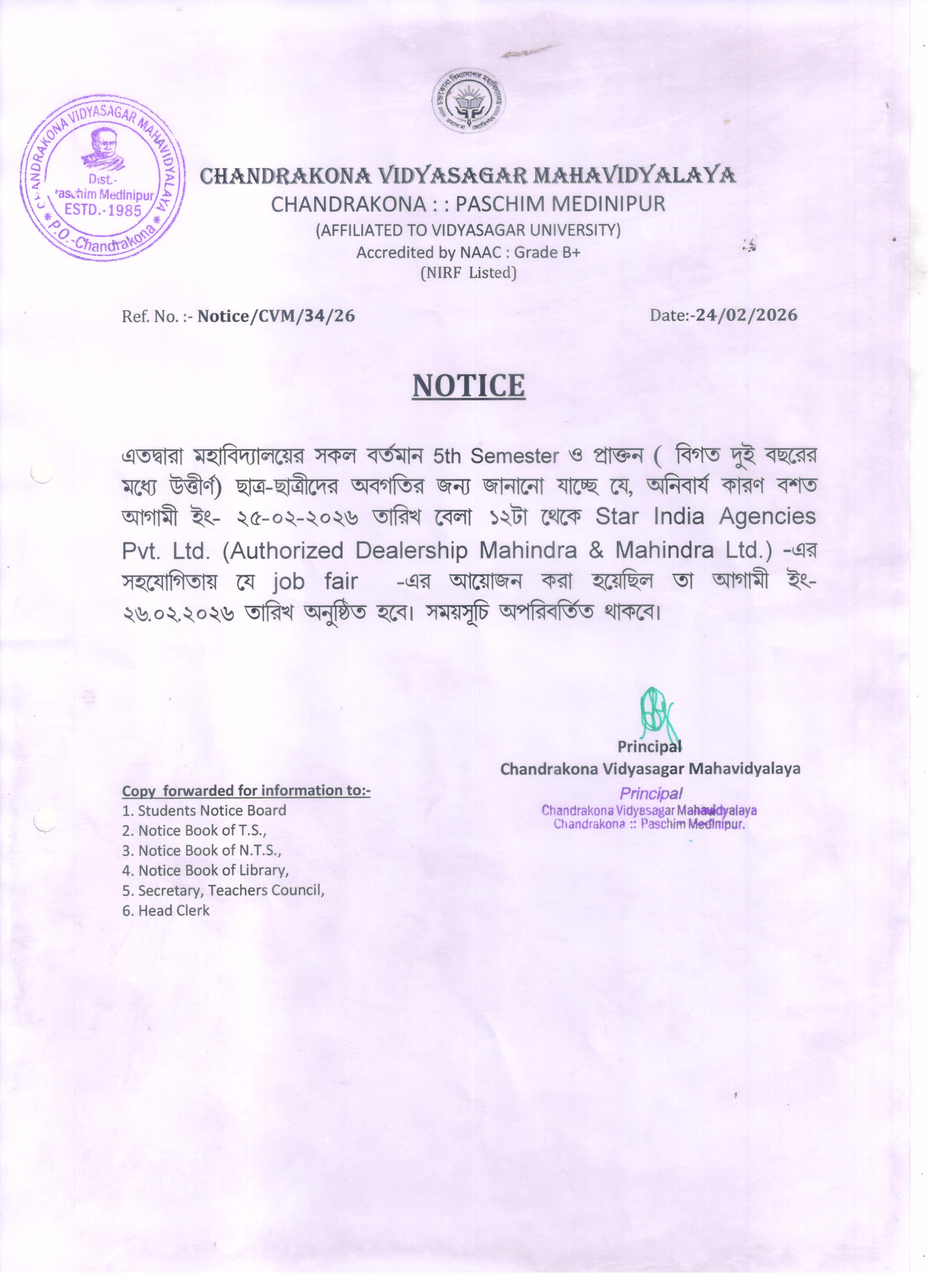 Notice for 1st Sem & 5th Sem Students Regarding Scholarship