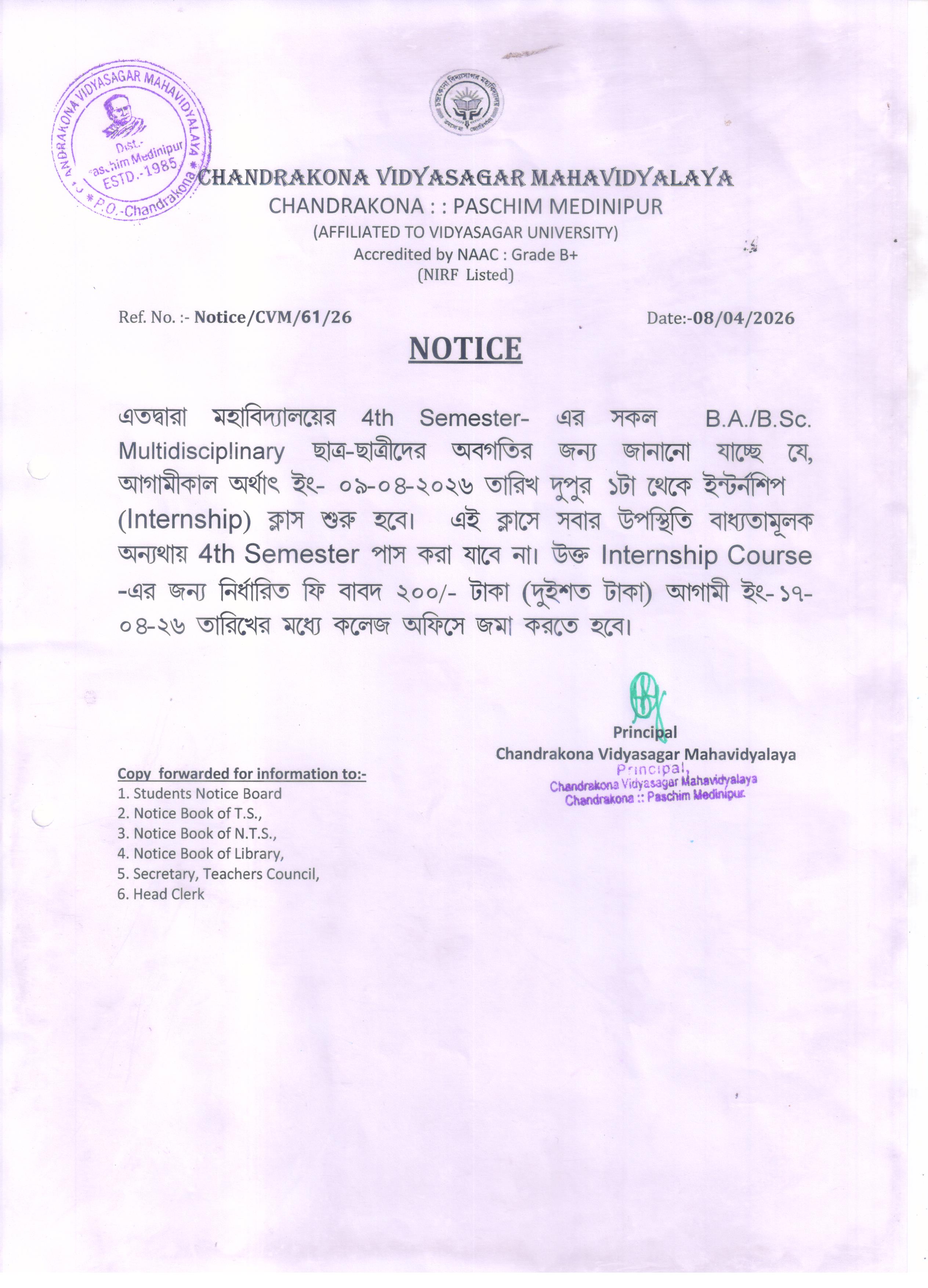 Notice for 3rd Semester for result cancelation , review and Self inspection